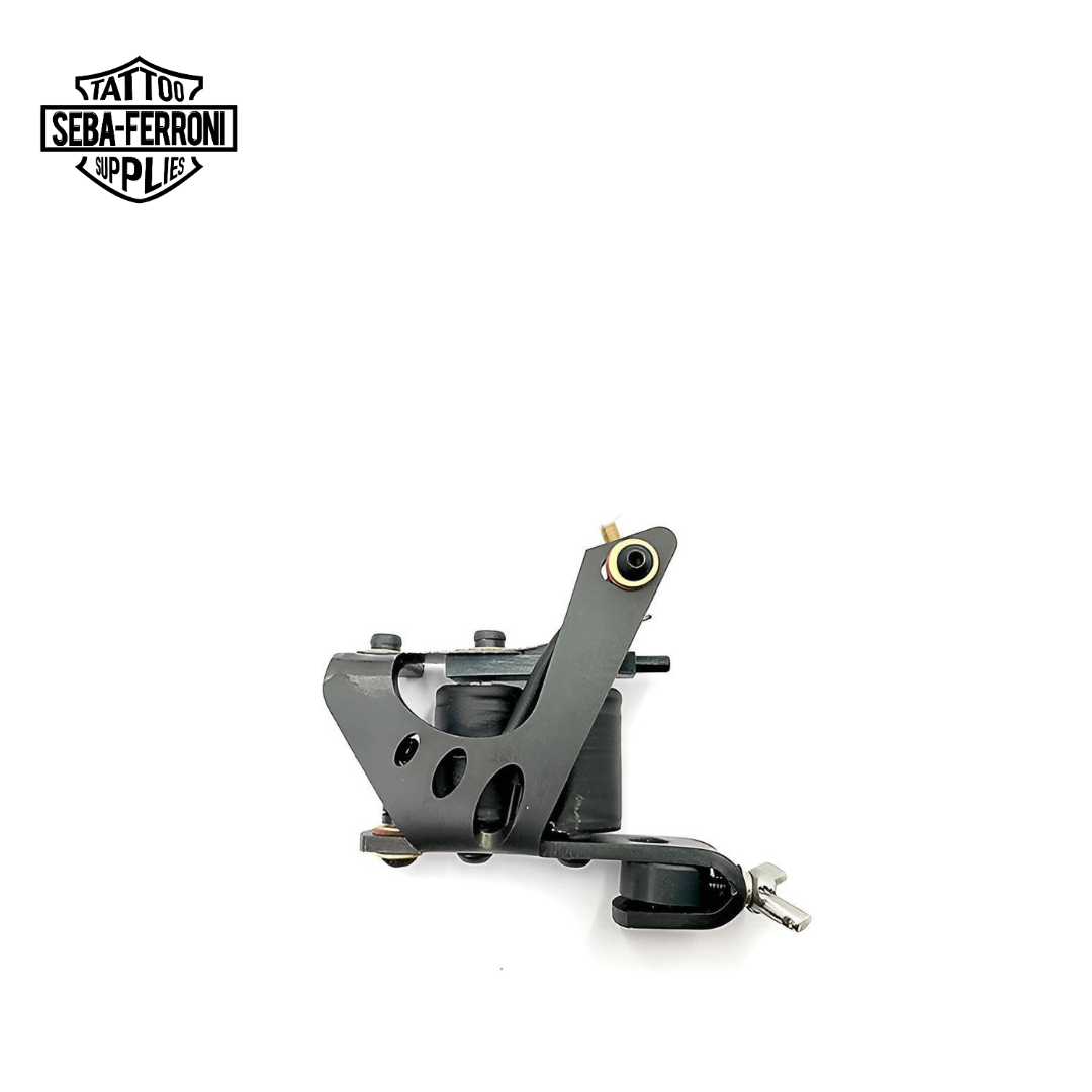 Cuenta con un cuadro de hierro plegado pavonado, lo que le otorga una estética robusta y una durabilidad superior. Equipada con bobinas de 10 vueltas y un tornillo de contacto de bronce, esta máquina asegura una conductividad eficiente y un rendimiento constante, optimizado para la aplicación de sombras. Los flejes de 0.50 complementan su diseño para una respuesta óptima en trabajos de shader.