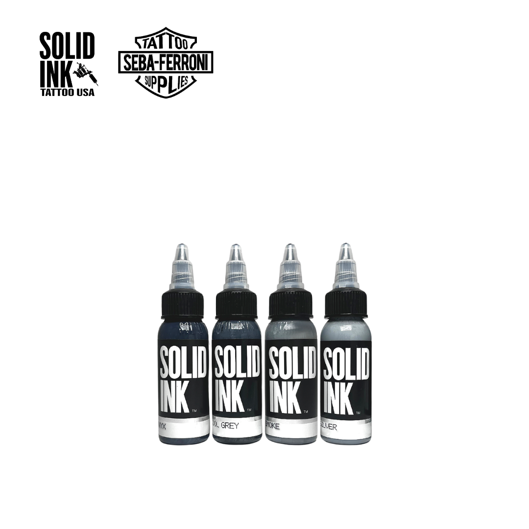 Estos grises contienen una mezcla de blanco y negro para darle un tono suave y liso, facilitando las transiciones y la saturación en la piel. Son ideales para covers, ya que su opacidad permite cubrir tatuajes existentes de manera efectiva. Como todas las tintas Solid Ink, estos pigmentos son veganos y libres de crueldad animal, y están fabricados en Estados Unidos, asegurando la más alta calidad y seguridad.